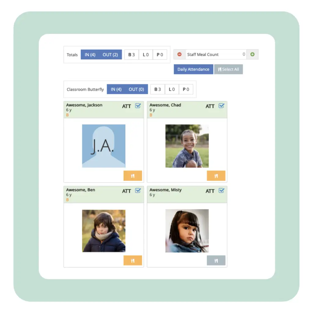 Record attendance and meals from any device, and automatically generate estimated servings and production records based on ages, meal patterns, and participation. No more bubble sheets or end-of-day recall errors.