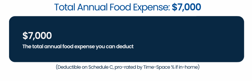 “If your reimbursement for the year was $6,000 but your grocery expenses were $7,000, you could deduct the extra $1,000 as a business food expense.”