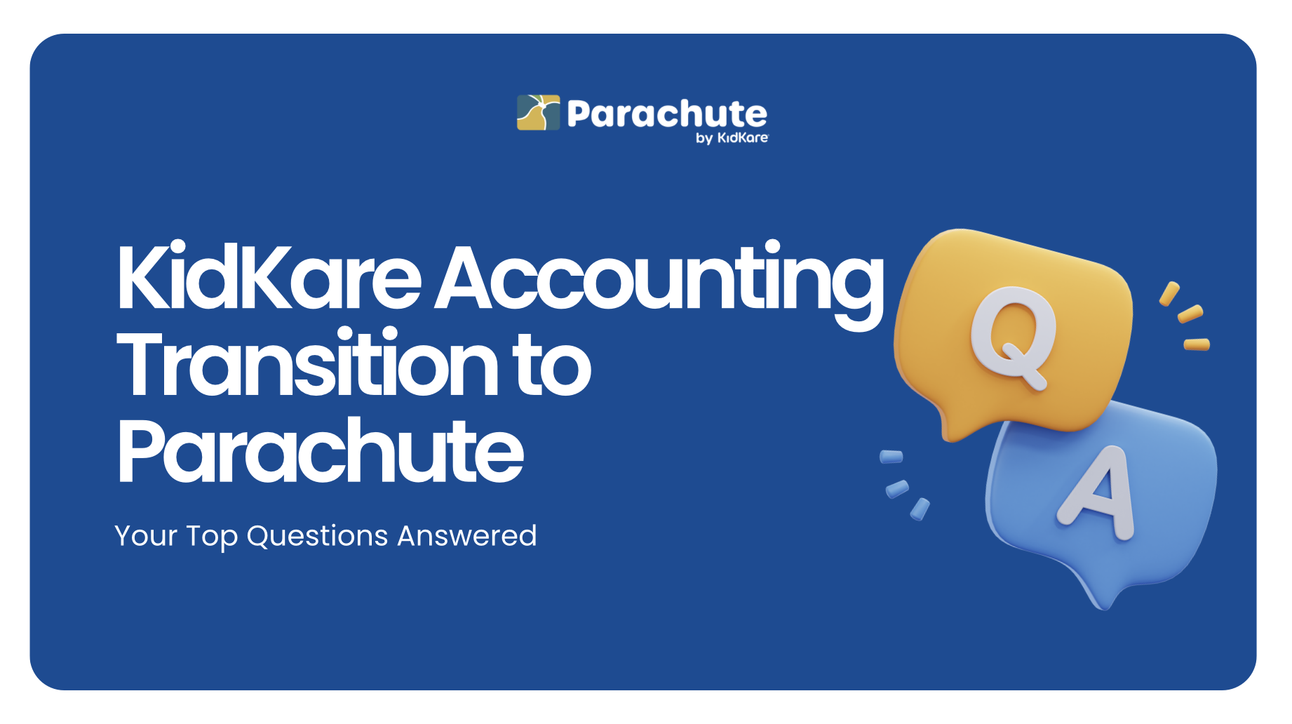 Bottom line: KidKare isn’t going away. You’ll keep using it for Food Program features, and Parachute is now your home for all accounting and financial tools.